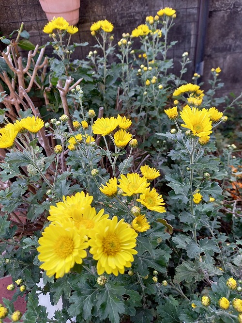 花壇で「ずっと!蕾(つぼみ)だった小菊たち」💛